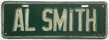 Al Smith 1928 Democrat Antique Presidential Political Booster License Plate Sign