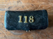ANTIQUE SPANISH GENUINE LEATHER AMMO MILITARY POUCH BAG, 1896 MARK, CUBA WAR g.