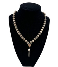(B) Old Antique Prayer Beads Ebony Silver Inlaid Tassels Tasbeeh Masabha