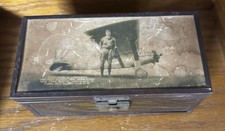 ANTIQUE BRASS TRINKET BOX WITH CHARLES LINDBERG PHOTO INSET