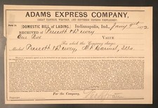 Antique 1872 Adams Express Company Domestic Bill Of Lading Indianapolis