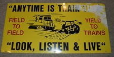 RARE Vintage LOOK LISTEN LIVE RAILROAD TRAIN TIME FARM TRACTOR ADVERTISING SIGN
