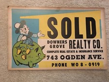 Downers Grove Realty Co. Vintage Cardboard Advertising Sign, Chicago, Illinois