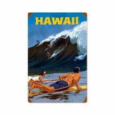 HAWAII SURFERS SURFING HUGE WAVES 18" HEAVY DUTY USA MADE METAL ADVERTISING SIGN