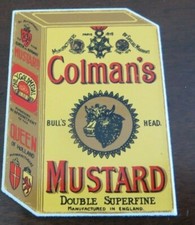 Colman's Bull's Head Mustard advertising box,miniture sign 2 3/4 x 2 in,