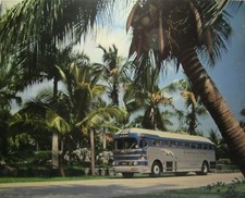 GREYHOUND BUS LINE Advertising POSTER MIAMI PALM TREES 50s HIGH GLOSS THICK CARD