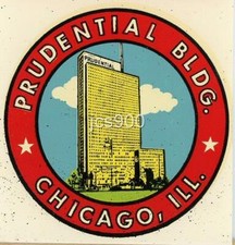 VINTAGE TRAVEL DECAL PRUDENTIAL BUILDING CHICAGO ILLINOIS SOUVENIR ENCO 1950s