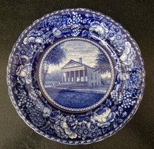 ANTIQUE PILGRIM HALL PLYMOUTH MASSACHUSETTS FLOW BLUE PLATE ROWLAND & MARSELLUS