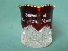 Antique Ruby Stained Souvenir of Hampton Minnesota Toothpick Holder