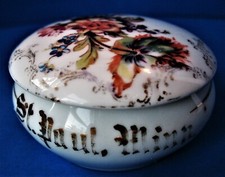Antique German Hand Painted Souvenir St Paul, Minn Round Covered Trinket Bowl