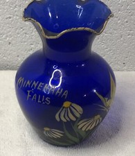Antique Vintage Cobalt Blue Hand Painted Floral Butterfly Vase Minnehaha Falls