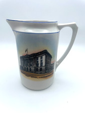 Antique Porcelain Souvenir Pitcher, Post Office, Omaha, Nebraska, 19th Century