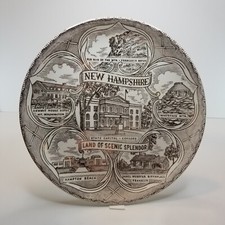 New Hampshire Plate Souvenir Land Map Of Scenic Splendor w/ Landmarks Vintage.
