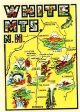VINTAGE WHITE MOUNTAINS NEW HAMPSHIRE STATE GRAPHIC MAP SOUVENIR TRAVEL DECAL