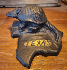 Vintage Armadillo Texas State Map Paperweight Novelty Souvenir Oddity Home Decor