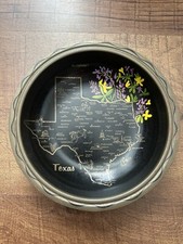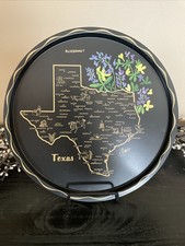 Vintage Round 11" Metal Tray of Texas Map Bluebonnet Flowers Travel Souvenir