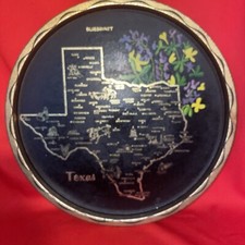 Vintage Souvenir Texas Map Round Serving Metal Tray -Estate Find