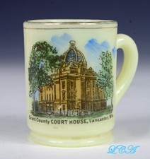 Antique LANCASTER WISCONSIN antique mini souvenir CUSTARD cup w/pic COURT HOUSE