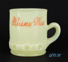 Antique UG Uranium CUSTARD GLASS Cup - Souvenir MARQUETTE Wisconsin Wis WI