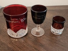 Lot Of 3 Ruby Red Flash Glass Antique Souvenir Cups Superior, WISCONSIN