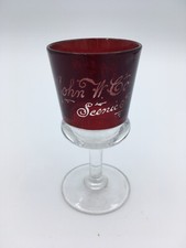 Antique Souvenir Glass, Ruby Flash Red John W Cole Park Poss Watertown Wisconsin