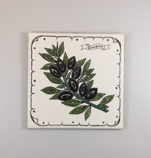 Vintage Hand Painted Made in Greece Olive Tree Ceramic Tile 6" Hanging Bracket