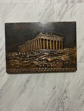 ANTIQUE Vintage GREEK ceramic Pottery Plate Sculpture Painted PARTHENON