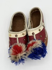 Vintage Antique Greek Ethnic folk dance child shoes Red Leather 6” With Pom Poms