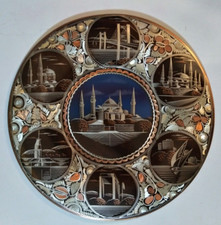VINTAGE 1970’S HAND MADE IN GREECE COLORFUL BRONZE PLATE 6 1/2”