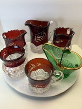 Lot Of 6 Antique Ruby Glass Souvenir Pieces