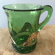 Antique Glass Souvenir Mini Mug Lacy Medallion GREEN Chicago Illinois Toothpick