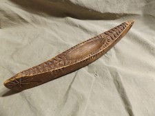 Primitive Vintage Antique Chip Carved Folk Art Island Tiki Canoe ~11" Palm Trees