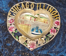 Vintage Antique Chicago Illinois Spelter Hear Shaped Trinket Dish Souvenir
