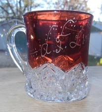 Hand Blown Ruby Red Flash Clear Glass Antique Mug “For A Good Girl” *Repaired*