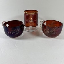 3 Antique 1908 Ruby Red Glass Fair Cups Mugs Glasses Wahpeton ND