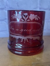 Complimentary Antique Ruby Flash Souvenir Glass Mug Compliments