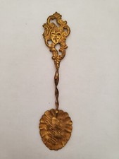 Antique Brass Worlds Fair Collectible Ornate Flattened Spoon Shape Souvenir