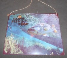 OLD PRIMITIVE VINTAGE FOLK ART STYLE ADVERTISING LURE TACKLE FISH BOAT LAKE SIGN
