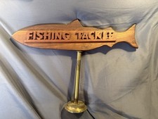 Vintage Carved Wooden Nautical FISHING TACKLE Advertising Sign Store Display