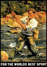 1930's FLY FISHING ADVERTISING TRAVEL GRAPHIC ART POSTER VINTAGE OUTDOOR SPORTS