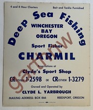 DEEP SEA FISHING 1950s REEDSPORT OREGON CHARTER ADVERTISING SIGN WINCHESTER BAY