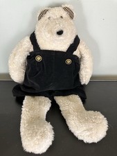 Vintage Woof & Poof Polar Bear Plush 19” Velvet Overalls Music Box Works Decor