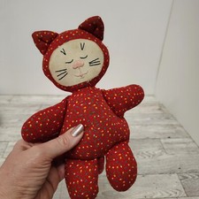 Handmade Cat Plush Doll Stuffed Animal Toy Red Floral Print Vtg Folk Art Decor