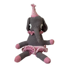 Vintage Handmade Crochet Elephant Doll Pink Ballerina Circus Plush Toy 16.5"