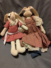 Vintage Cloth Bunny Rabbits Plush Folk Art Set Cute Dresses Set Of Two