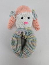 Handmade Crochet Baby Toy with Handle Girl with Pigtails Pastel Vintage