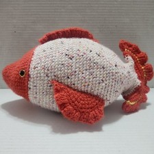 Vintage Crochet Fish Stuffed Plush Red Yellow 13" Handmade