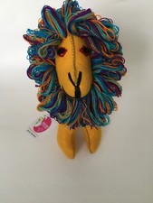 Rare VTG Mayan Lion Handmade Doll Plush Stuffed Animal 11” Felt Rainbow Yarn PL5