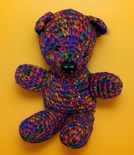 Vintage Handmade Crochet Bear Stuffed Animal Plush Toy Multi-color Cute