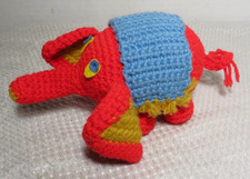 Vintage Handmade Crochet Elephant Baby Toy Plush Morocco Rattle Animal Nursery